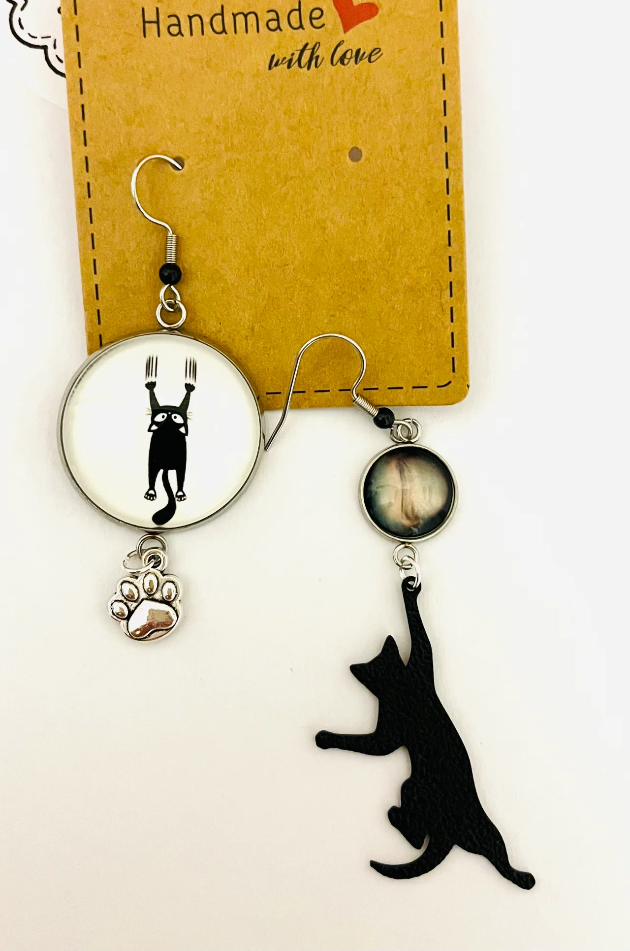 Boucles d’oreilles fantaisies chats suspendus dépareillées