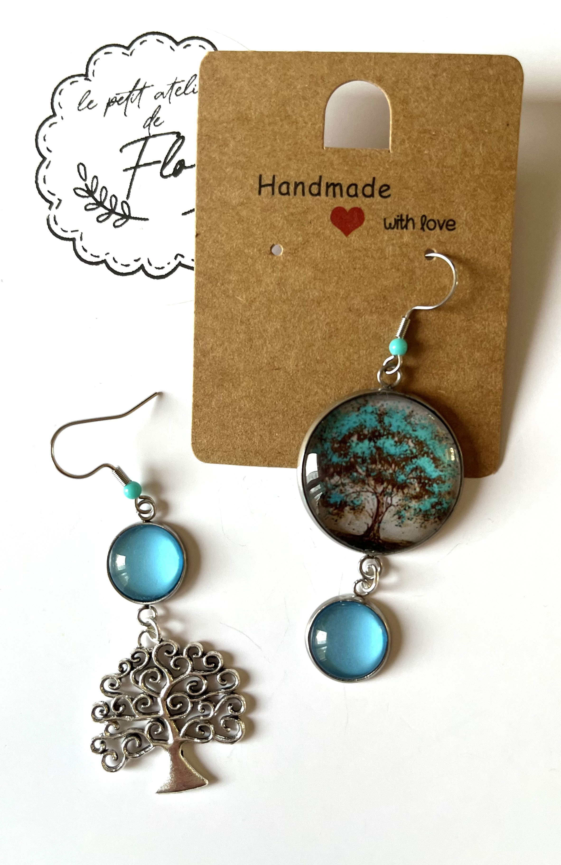 Boucles d’oreilles fantaisie Arbre de vie turquois