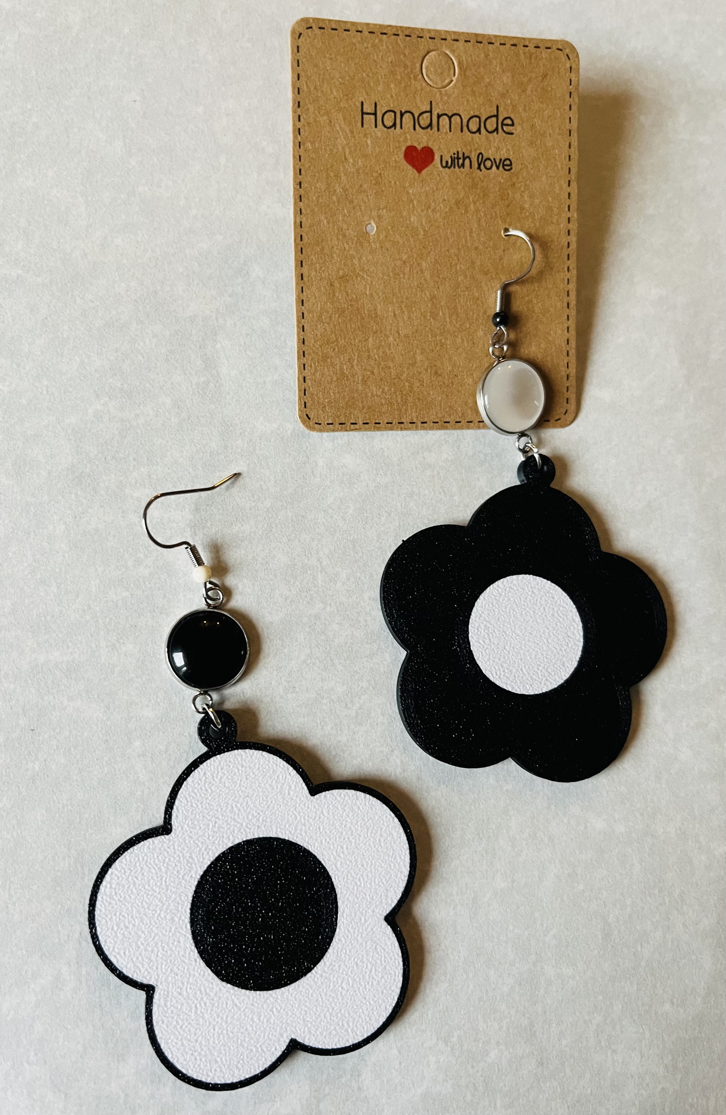 Boucles d’oreilles fantaisies Fleurs vintage noires & blanches
