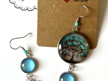 Boucles d’oreilles arbre de vie cabochon bleu ciel