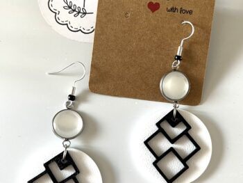 Boucles fantaisies formes géométriques blanc/noir