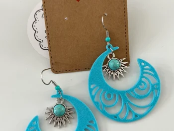 Boucles fantaisies soleils au cœur pierres turquoises