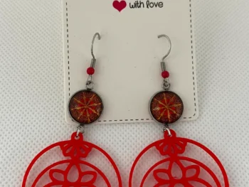 Boucles d’oreilles fantaisies Lunes Lotus rouges