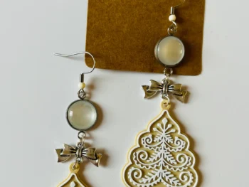 Boucles d’oreilles fantaisies sapins de noël beiges