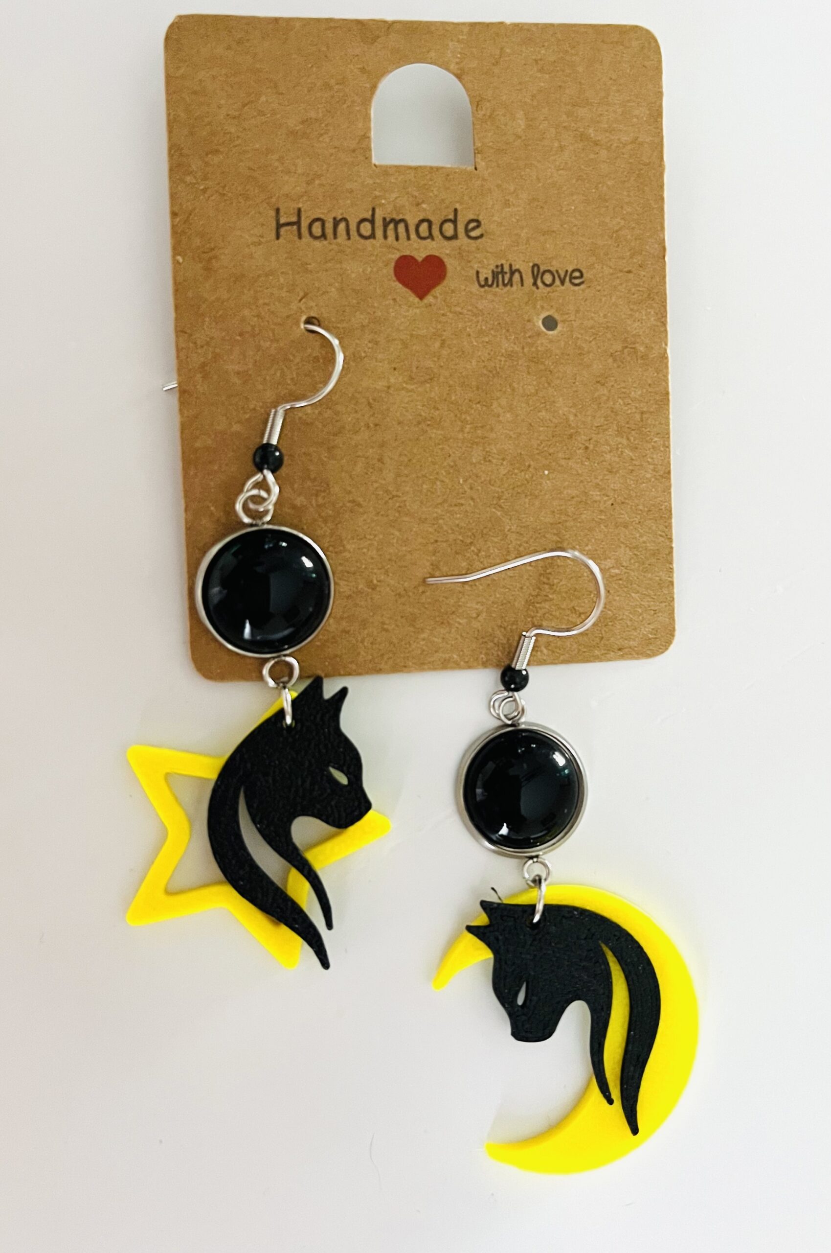 Boucles d’oreilles chats noirs lune & étoile Breloques en PLA biodégradable