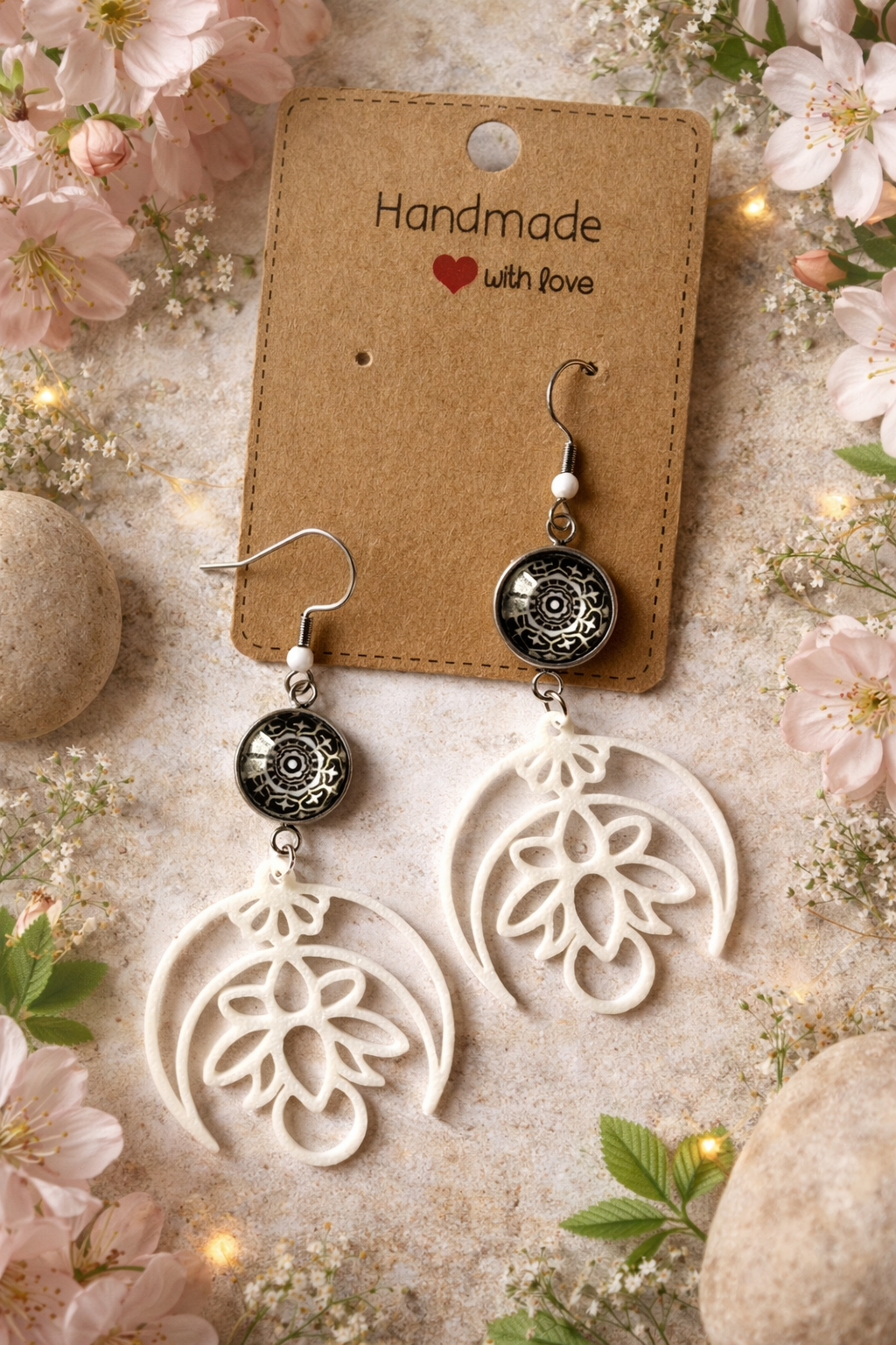 Boucles d’oreilles fantaisies Lune Lotus