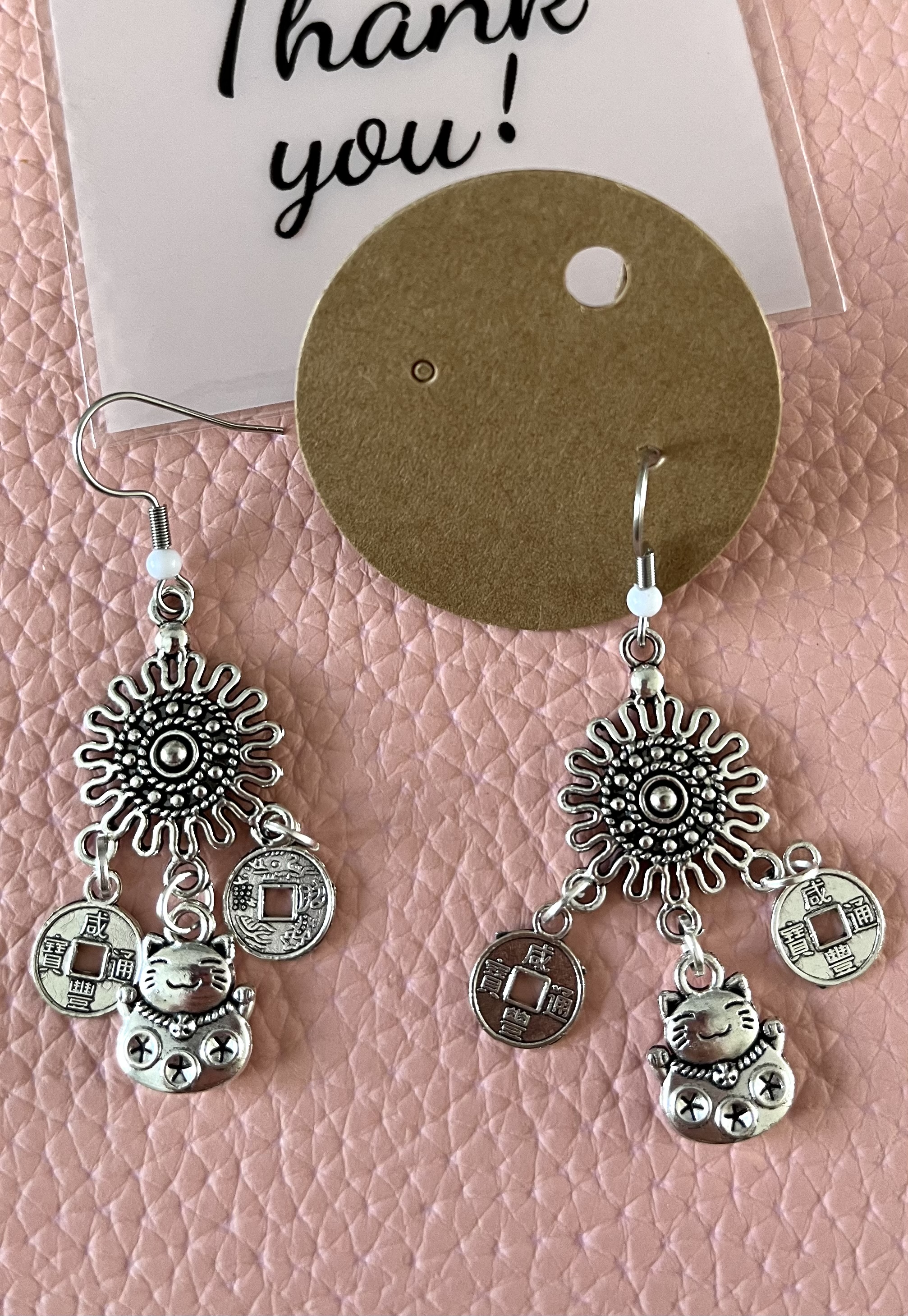 Breloques pièces et Maneki Neko en métal