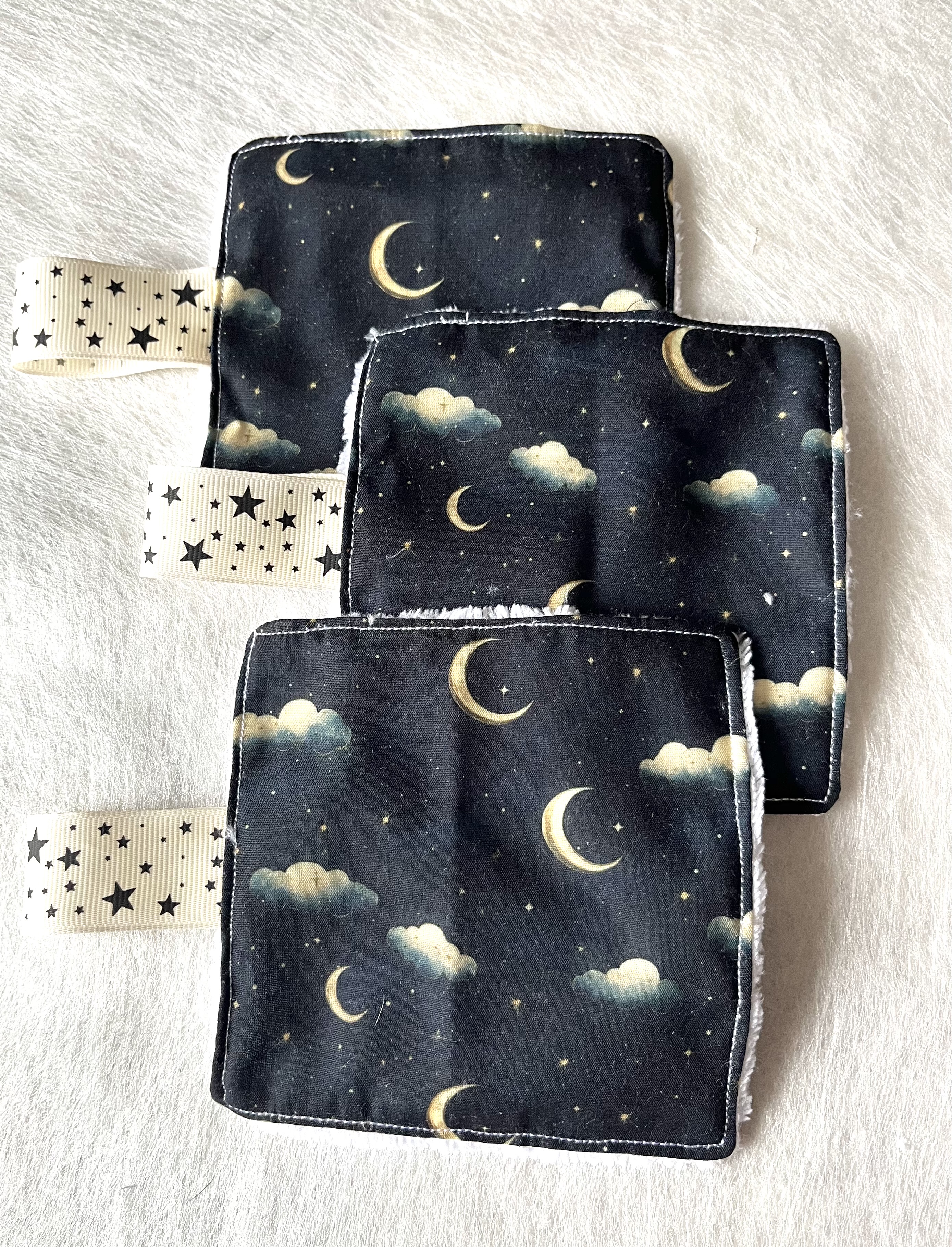 lot de lingettes lavables faites main, idéales pour le démaquillage, la toilette de bébé ou l’hygiène quotidienne.