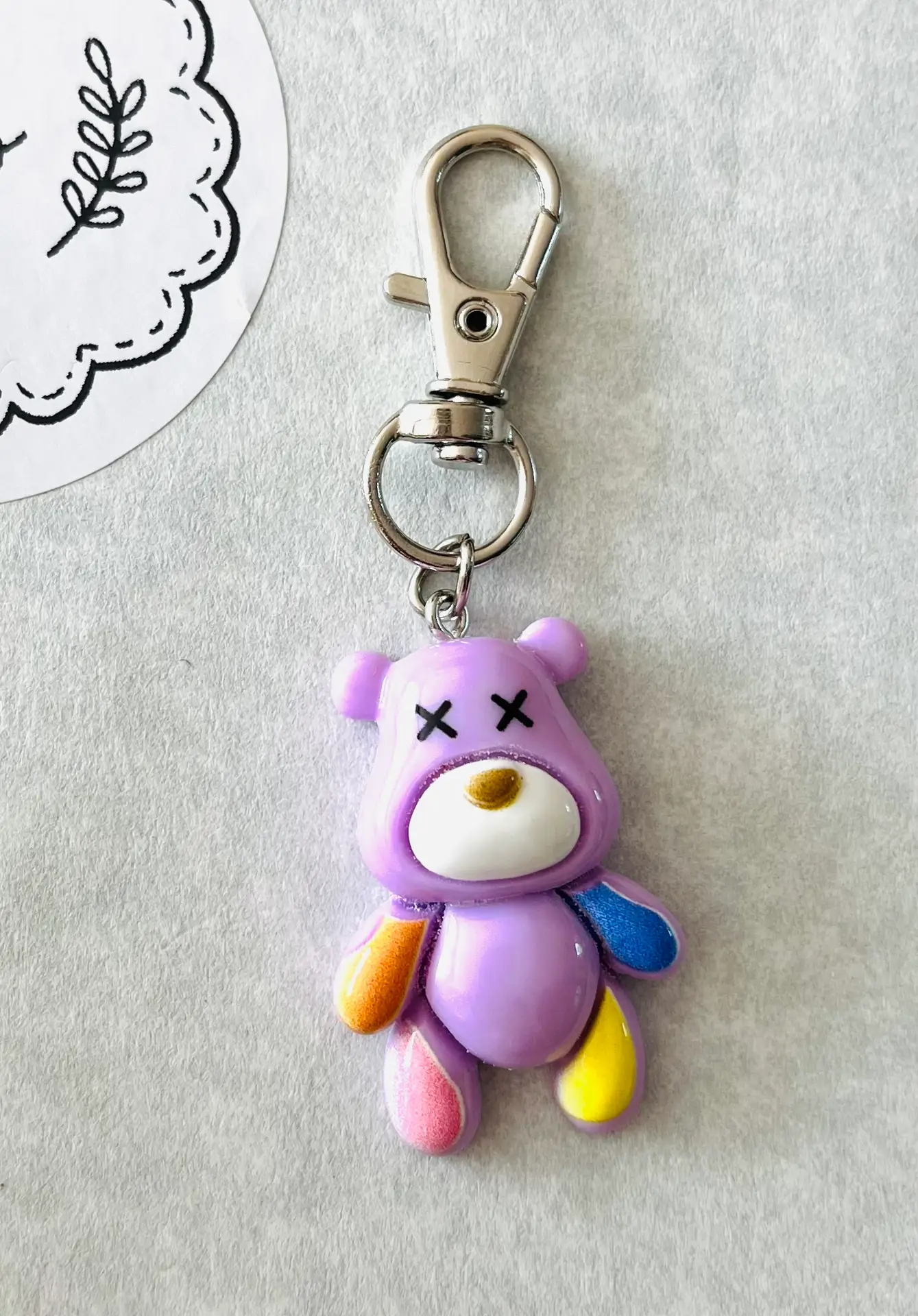 Porte clef ourson violet résine