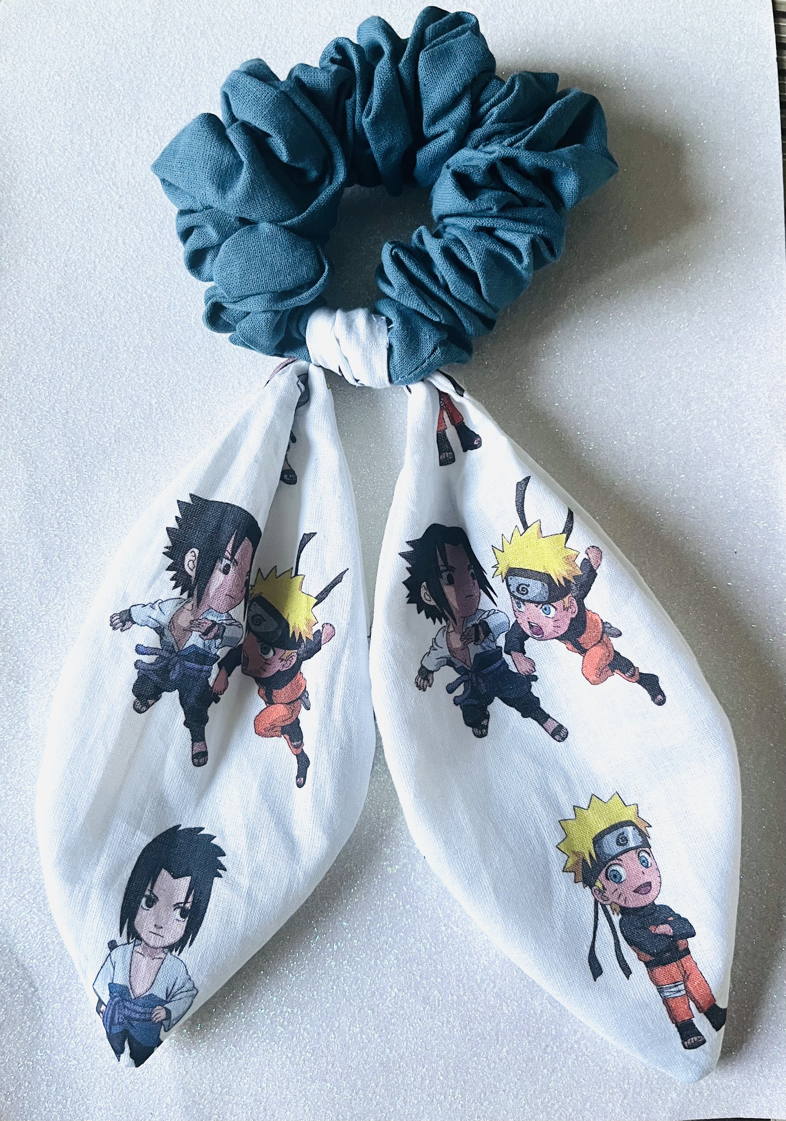 Ce chouchou associe un tissu uni bleu/vert élégant à un Scrunchie imprimé manga, Naruto, parfait pour les fans d’animation japonaise et de looks tendance.