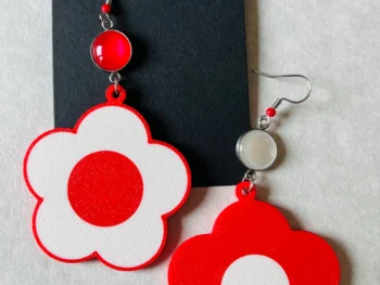 Boucles d’oreilles fantaisies Fleurs rétro rouge et blanc