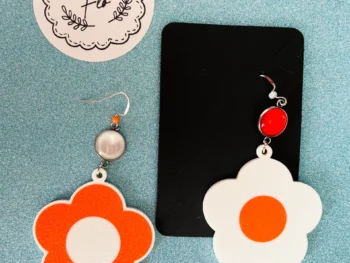 Boucles d’oreilles fantaisies Fleurs rétro orange blanc
